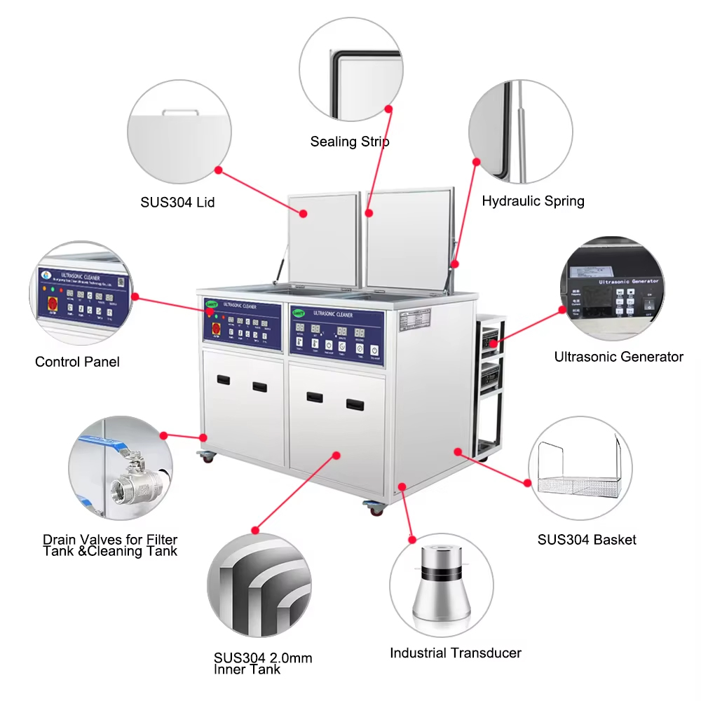 Ultrasonic Cleaning Machine Two Tanks 560L Filtration Drying Ultrasound Cleaner