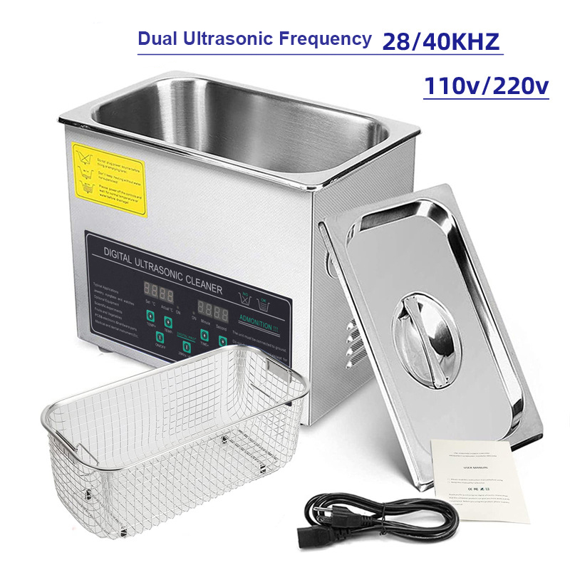 Lush Trees Tech Stainless Steel 3L Ultrasonic Cleaner Dual Frequency Jewelry Glasses Parts Washer