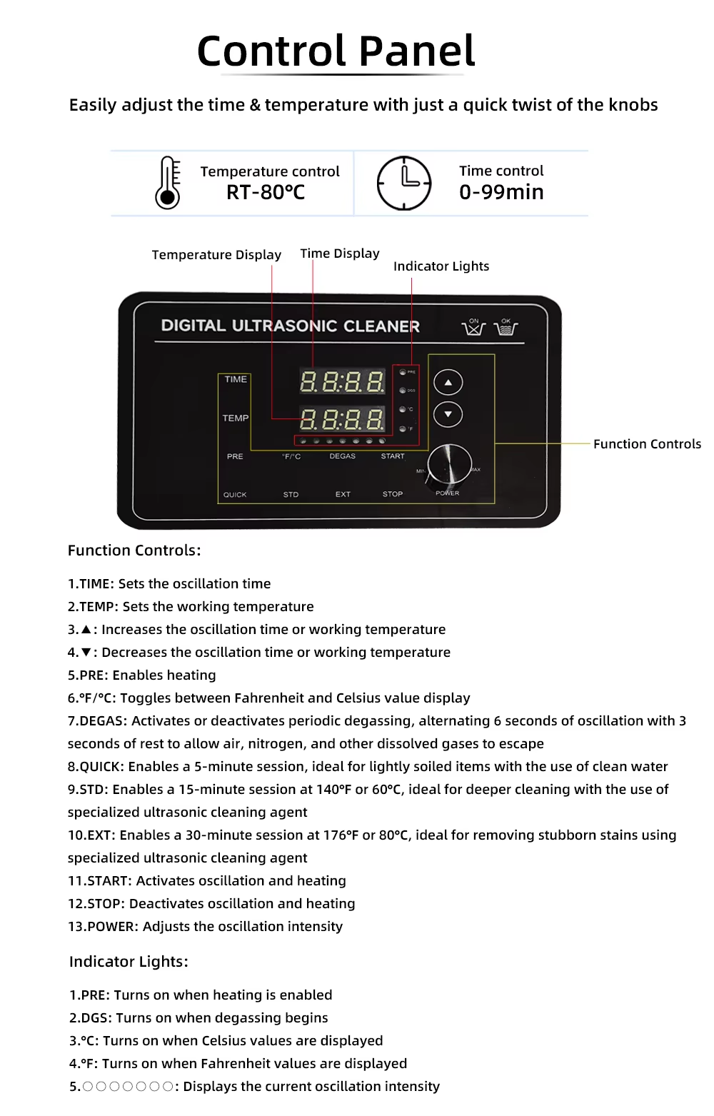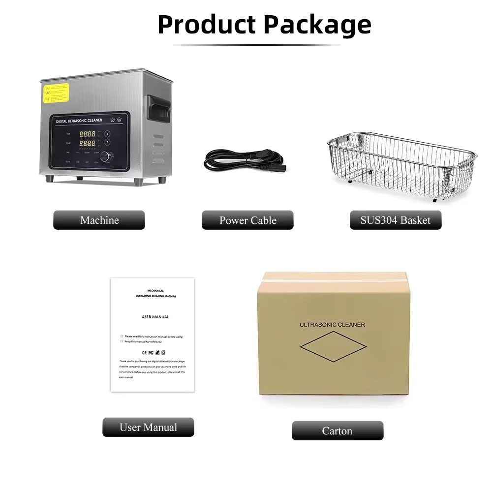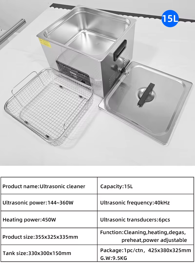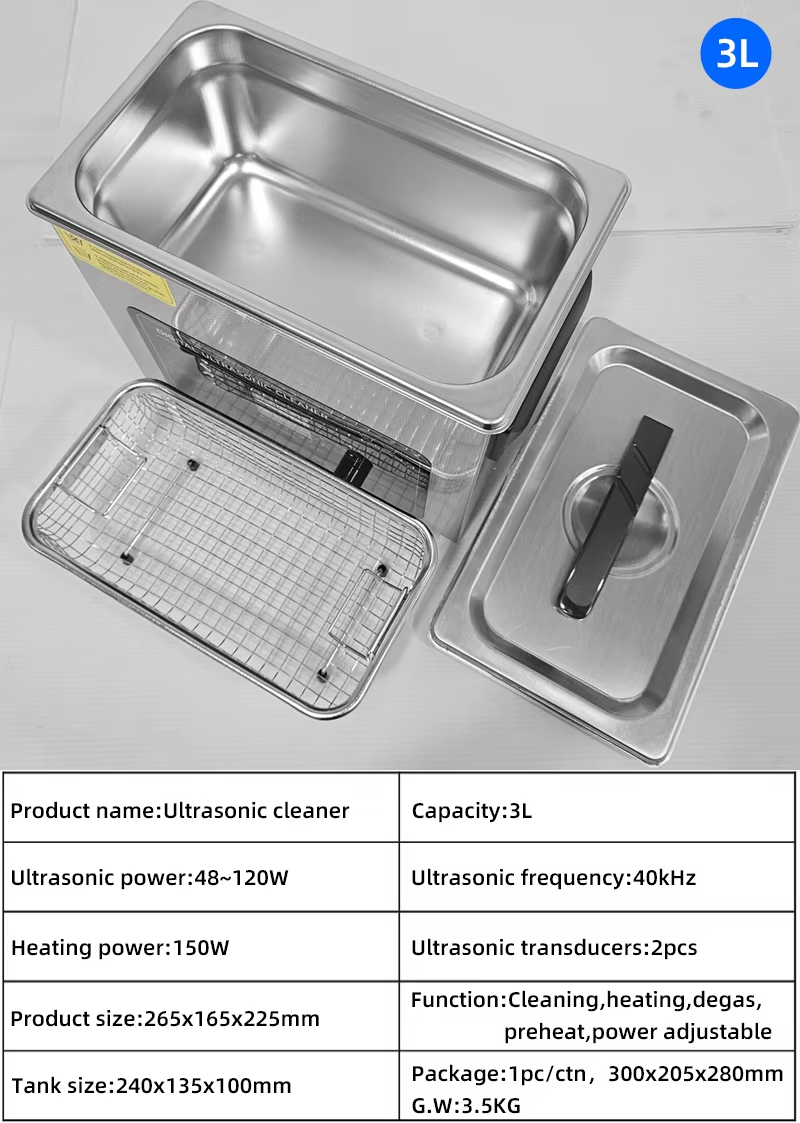 1. Function: Cleaning with heating, degas, and ultrasonic power adjustable function.