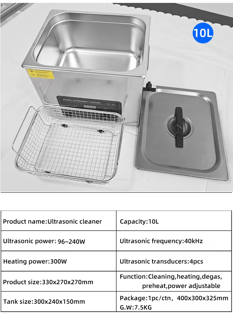 Ultrasonic Cleaning Machine 10L 40kHz 240W for Jewelry Glasses Metal Parts
