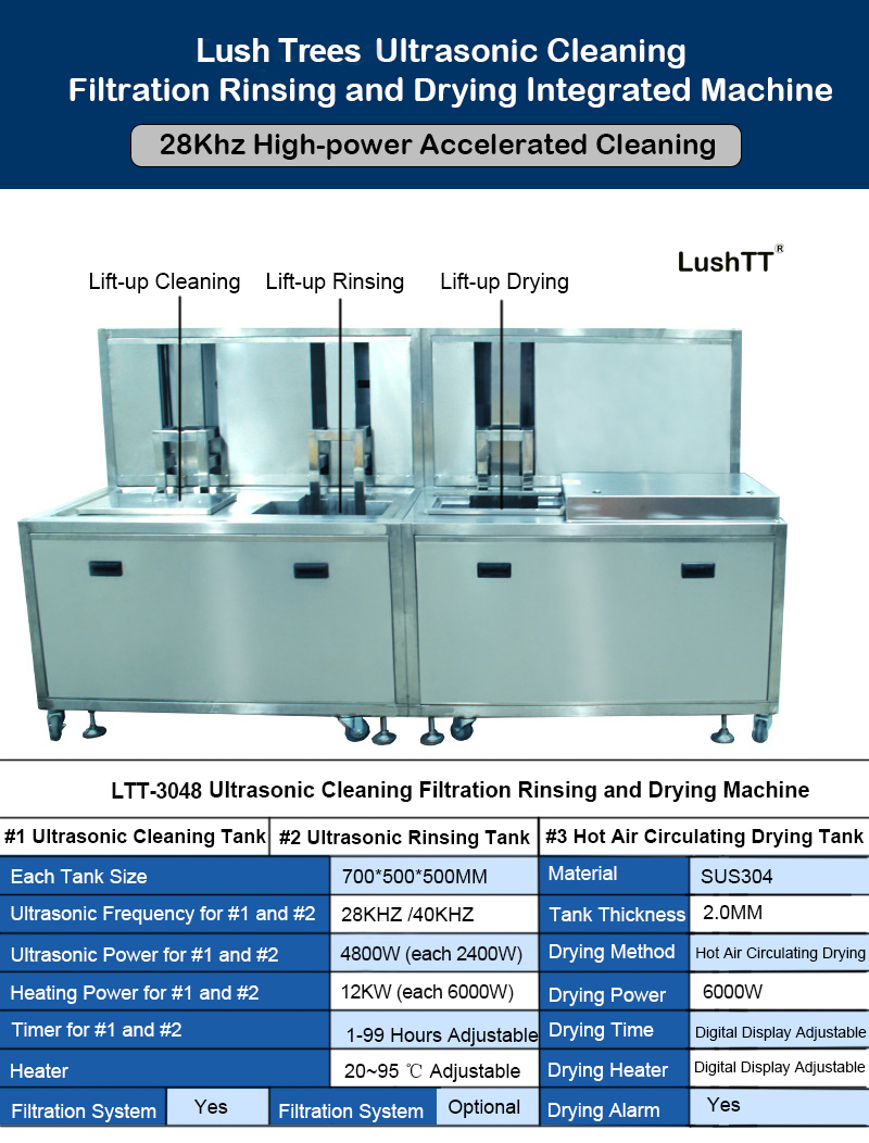7. Function: industrial ultrasonic cleaning with filtering, lifting and drying system.