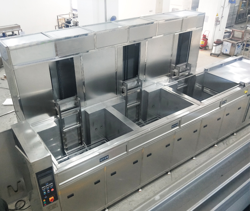 2. Ultrasonic: the 1st and 2nd tank ultrasonic system, transducer wall-mounted installation mode, evenly arranged at the bottom of the equipment. Each tank ultrasonic power 3000W (max. input 3600W, max. output 3000W), total 6000W. Frequency 40KHZ, equipped with independent generator control, power adjustable.