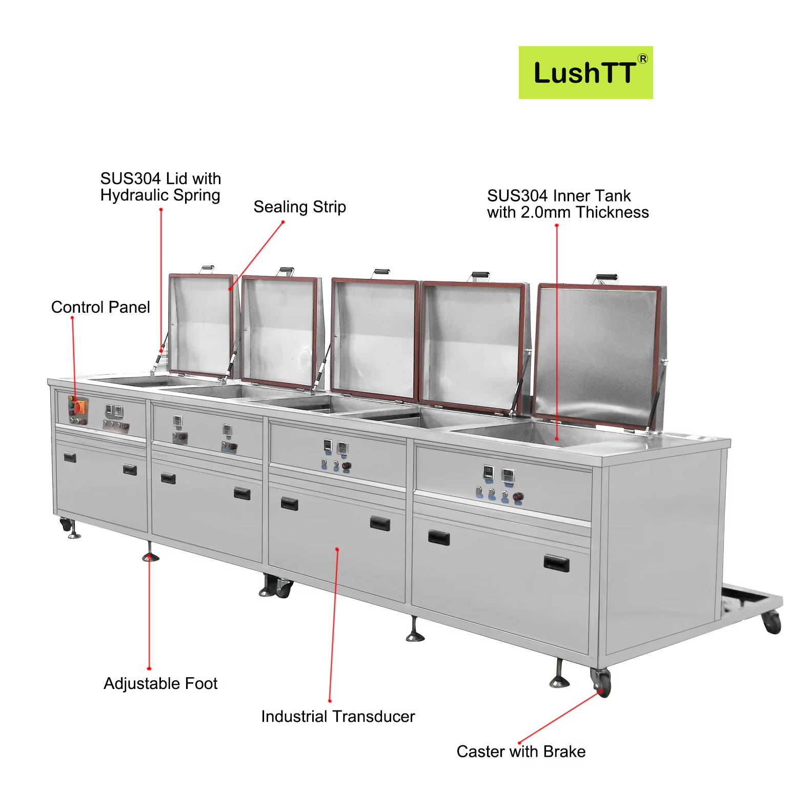 Lush Trees Tech Ultrasonic Cleaning Machine Five Tanks 192L Washing Machine for Automotive Workshop