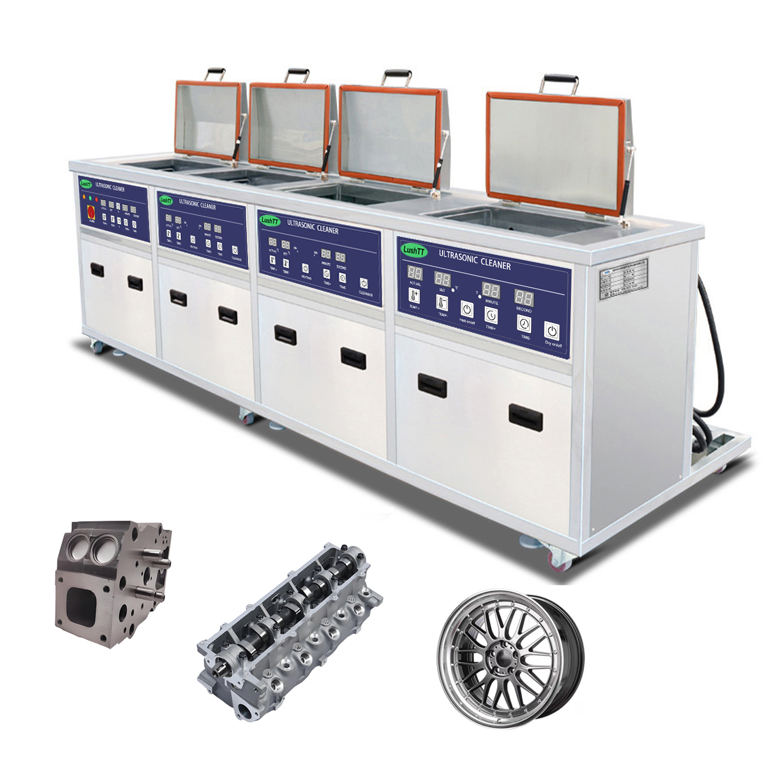2. Function: 1st tank ultrasonic cleaning (with filtration and recycling) + 2nd tank ultrasonic rinsing + 3rd tank ultrasonic rinsing + 4th tank hot air circulation drying.